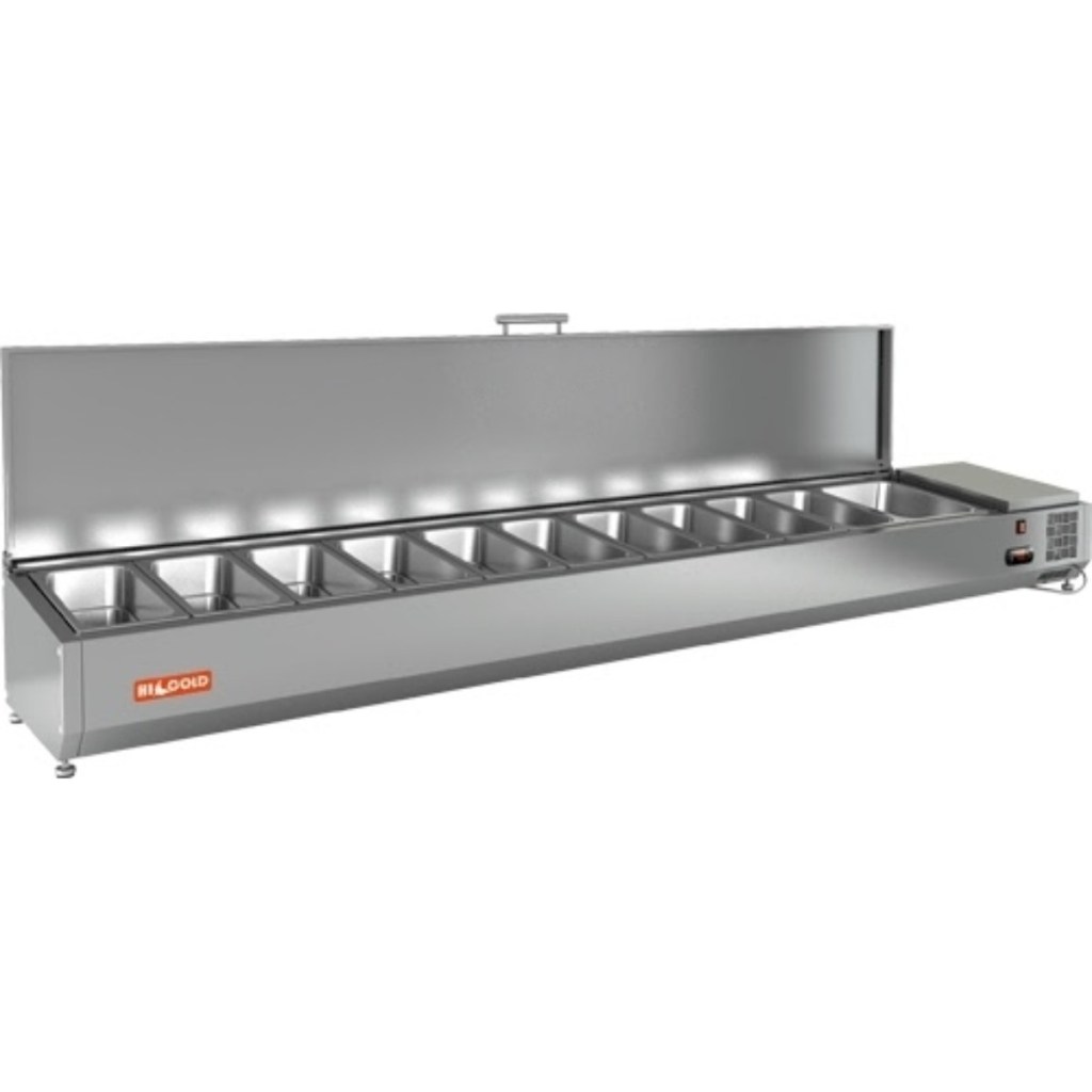 Каталог оборудования Холодильное оборудованиеВитрины для ингредиентовВитрина холодильная для ингредиентов HICOLD VRTU 2360 к PZ4 1(/3) Витрина холодильная для ингредиентов HICOLD VRTU 2360 к PZ4 1(/3) Код товара: 064-671 Поделиться: WhatsAppTelegram СравнитьДобавить в КПВ избранное 0 68 409 ₽ В корзину 0 шт Под заказСамовывоз сегодня бесплатно Взять в кредит Купить в лизинг Получить консультацию в WhatsApp Описание Характеристики Отзывы 0 Инструкции 3 Витрина холодильная для ингредиентов HICOLD VRTU 2360 к PZ4 1(/3) предназначена для охлаждения, кратковременного хранения и демонстрации ингредиентов, салатов и готовых блюд на предприятиях общественного питания и торговли. Устанавливается на холодильные столы для пиццы серии PZ4 благодаря встроенным креплениям в нижней части корпуса. На фото показана аналогичная модель с настольной установкой. Ключевые особенности: Корпус из нержавеющей стали — долговечность и лёгкость ухода. Электронная панель управления — точная настройка температуры. Исполнение U — оснащена крышкой для защиты продуктов. Высота витрины — 279 мм — компактное размещение на рабочей поверхности. Вместимость: 10xGN1/3 + 1xGN1/2 — рациональная организация хранения (гастроёмкости приобретаются отдельно). Совместимые модели столов: PZ4-111/GN HICOLD VRTU 2360 к PZ4 1(/3) — это профессиональная настольная витрина, которая сочетает компактные размеры, современное управление и надежную защиту ингредиентов. Отличный выбор для пиццерий, ресторанов и кафе, где важны удобство доступа, сохранность продуктов и высокая скорость работы.Изображение товара, представленного на фото, может отличаться от его фактического вида. Показать все Габаритные размеры2360×385×279 ммДиапазон рабочей температурыот +2 до +7 °CДлина2360 ммГлубина385 ммВысота279 ммТип крышкиМеталлическая Гастроемкостей11 штТип гастроемкостейGN1/2, GN1/3 Напряжение220 ВТип охлажденияСтатическое Материал изготовленияНержавеющая сталь ХладагентR134 Мощность0,15 кВтВес нетто47 кгВес брутто83 кгТип оттайкиРучная Габариты в упаковке2500×485×379 ммБрендHicold Оставить отзыв Еще никто не оставил отзыв на этот товар Инструкция на HICOLD VRTU 2360 к PZ4.pdfСхема установки на витрину.jpgДекларация о соответствии.pdf Похожие товары Перейти в каталог В наличии 91 697 ₽ Витрина холодильная для ингредиентов TEFCOLD VK38-150 Под заказ Цена по запросу Витрина для ингредиентов Polair VT2-G (1/3) открытого типа С этим товаром покупают В наличии 96 446 ₽ Стол холодильный среднетемпературный Polair ТМ2-G Под заказ 108 783 ₽ Стол морозильный HURAKAN HKN-GN2BT В наличии 38 038 ₽ Льдогенератор Cooleq BF-20 (пальчики) В наличии 83 720 ₽ Шкаф холодильный МХМ Капри 0,7М Ранее просмотрено Под заказ 58 257 ₽ Витрина холодильная для ингредиентов HICOLD VRTG 1000 к PZE3 (1/3)