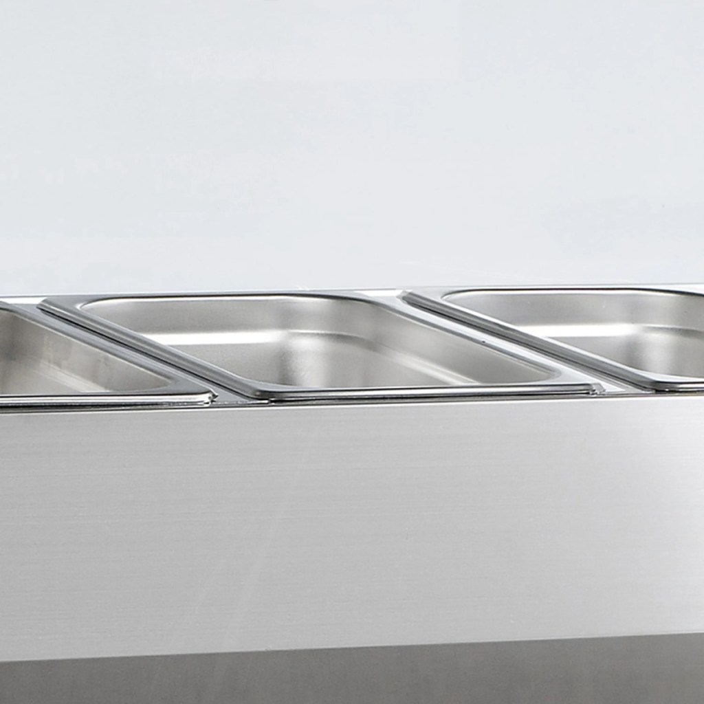Каталог оборудования Холодильное оборудованиеВитрины для ингредиентовВитрина холодильная для ингредиентов TEFCOLD VK33-120 Витрина холодильная для ингредиентов TEFCOLD VK33-120 Код товара: 010-380 Поделиться: WhatsAppTelegram СравнитьДобавить в КПВ избранное 0 72 104 ₽ В корзину 0 шт В наличииСамовывоз сегодня бесплатно Взять в кредит Купить в лизинг Получить консультацию в Max Описание Характеристики Отзывы 0 Витрина холодильная для ингредиентов TEFCOLD VK33-120 предназначена для кратковременного хранения и демонстрации готовых салатов, мясных и рыбных закусок, а также ингредиентов на предприятиях общественного питания и торговли. Корпус и внутренняя обшивка выполнены из нержавеющей стали, что обеспечивает долговечность и легкость очистки. Гастроемкости в комплект не входят. Особенности: Статическое охлаждение — равномерная температура, подходит для деликатных продуктов. Механическое размораживание — надежное удаление наледи без вмешательства. Хладагент R600a — экологичный и энергоэффективный. Электронный термостат и градусник — точное регулирование и контроль температуры. Гнутый стеклянный колпак — обзор и защита продукции. Регулируемые ножки — удобная установка и устойчивость. Климатический класс 4 — работа при температуре до +32°C. Вместимость — 5×GN 1/4, глубина 150 мм, удобно для салатов и закусок. Перегородки — 4 длинные и 1 короткая, поддерживают порядок продуктов. Уровень шума — 47 дБ, почти бесшумная работа. Хладагент — 0,04 кг, экономичное и эффективное охлаждение. Внутренние размеры — 845×245×155 мм, компактное размещение емкостей. TEFCOLD VK33-120 - компактная, надежная и гигиеничная витрина для демонстрации и кратковременного хранения продуктов, обеспечивающая удобство эксплуатации и безопасное хранение деликатных ингредиентов.Изображение товара, представленного на фото, может отличаться от его фактического вида. Показать все Габаритные размеры1200×335×435 ммДиапазон рабочей температурыот +2 до +10 °CДлина1200 ммГлубина335 ммВысота435 ммТип крышкиСтеклянная Гастроемкостей5 штТип гастроемкостейGN 1/4 Мощность0,112 ВтНапряжение220 ВТип охлажденияСтатическое Климатический класс4 ХладагентR600a Вес нетто40 кгВес брутто45 кгТип оттайкиРучная Габариты в упаковке1280×380×310 ммБрендTefcold Оставить отзыв Еще никто не оставил отзыв на этот товар Похожие товары Перейти в каталог Под заказ Цена по запросу Витрина для ингредиентов Polair VT2-G (1/3) открытого типа Под заказ 43 000 ₽ Витрина для ингредиентов Carboma A40 SM 1,2 VT2-G С этим товаром покупают Под заказ 109 342 ₽ Стол морозильный HiCold GN 1/BT В наличии 52 266 ₽ Льдогенератор Rosso BY-550F Под заказ 126 251 ₽ Шкаф холодильный Abat ШХс-0,7-02 Ранее просмотрено В наличии 91 661 ₽ Витрина холодильная Carboma G110 ВХС-1,25 (G110 SM 1,25-1) Под заказ 125 790 ₽ Шкаф холодильный Abat ШХ-0,7