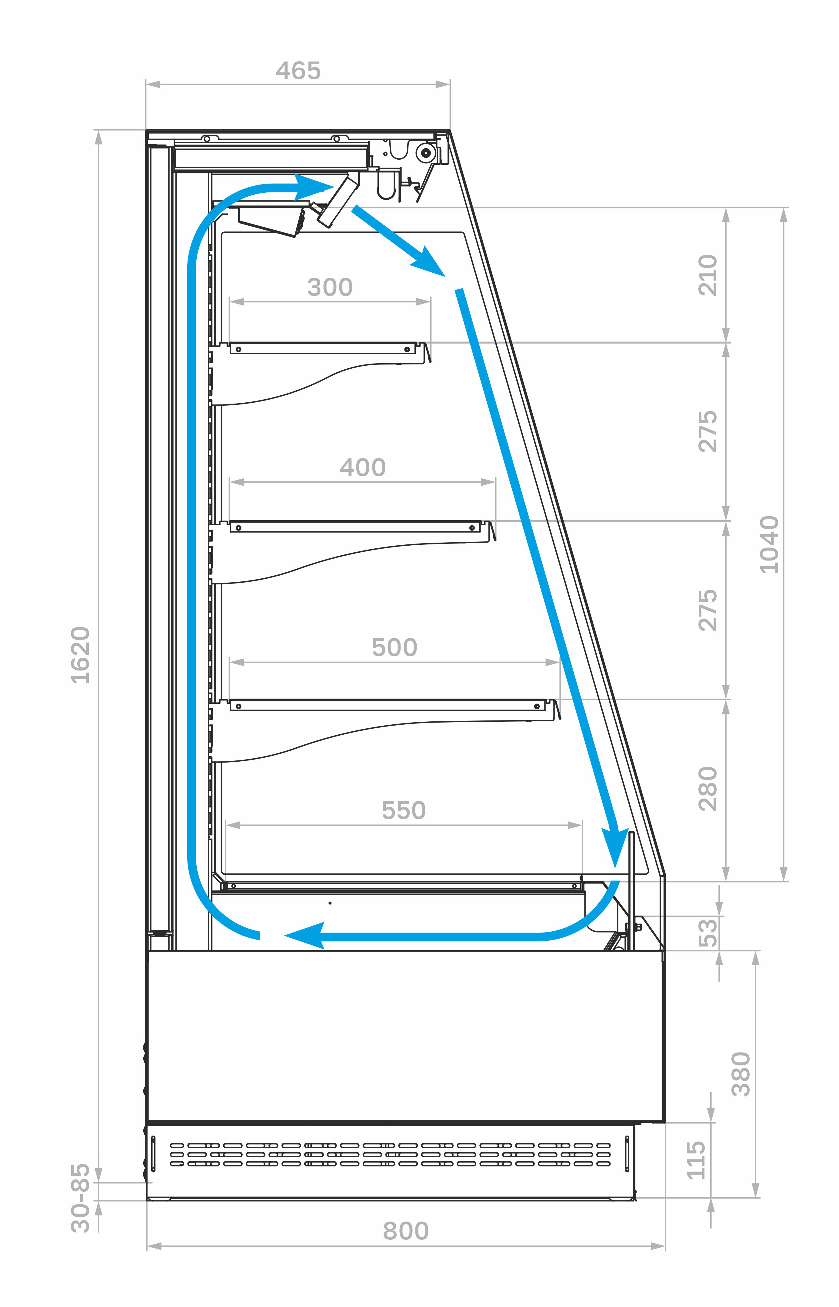 • Боковины – металлические панели с зеркальным покрытием для улучшения обзора продукции и визуального расширения пространства.