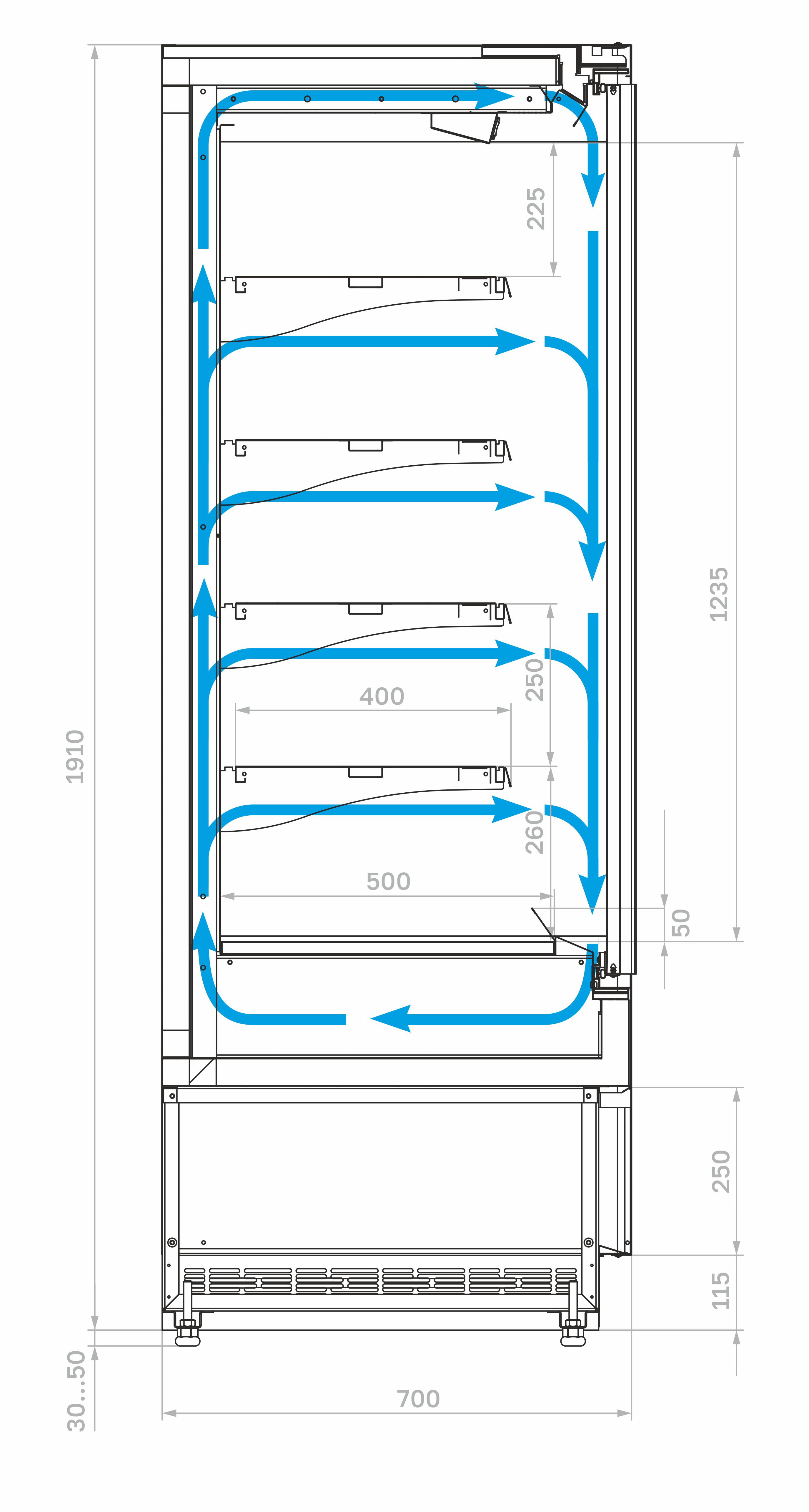 Боковые панели с прозрачными стеклопакетами и дверь из низкоэмиссионного каленого стекла для энергосбережения и оптимального обзора продукции;