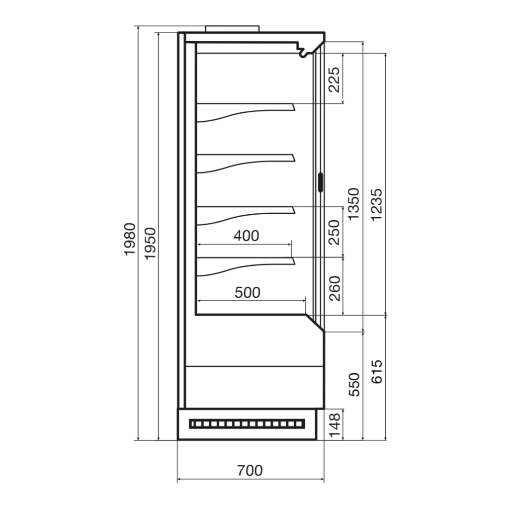 • Одинарное стекло — отличная видимость продукции и удобный доступ покупателей