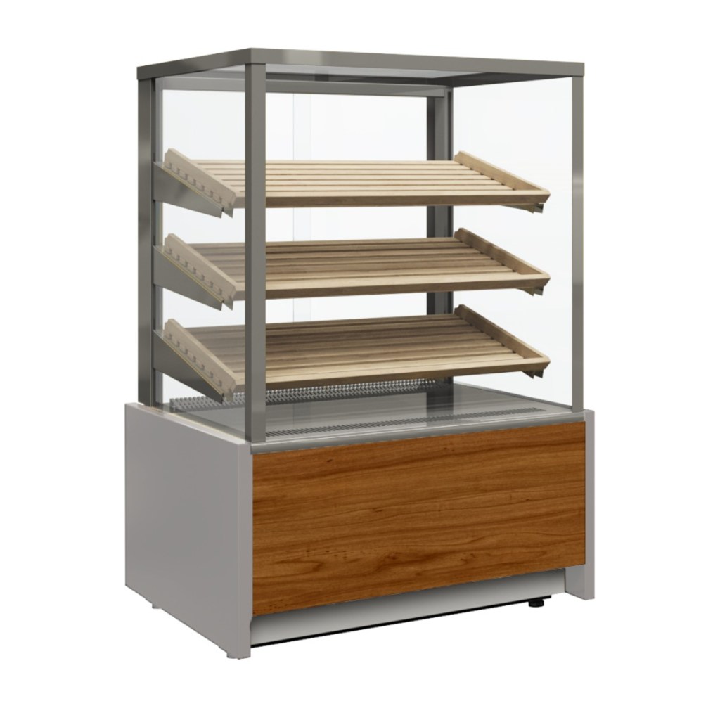 Витрина кондитерская Carboma KC70 N 1,3-1 Light Bread Паттерн (0107 Ольха) хлебная, со стеклом предназначена для кратковременного хранения и привлекательной демонстрации хлебобулочных изделий. Наличие фронтального стекла обеспечивает защиту продукции от внешних воздействий, сохраняя её свежесть и гигиеничность, при этом демонстрационная зона остаётся полностью обозримой для покупателей.