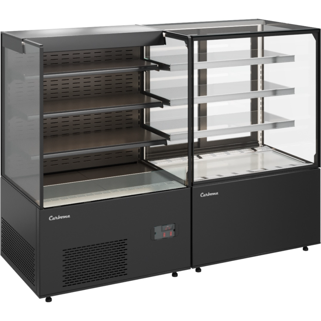 Carboma KC71-130 VV 1,2-2 (9005) открытая идеально подходит для кафе, кондитерских, баров и ресторанов, где важны удобный доступ, стильная подача и стабильные условия хранения. Это надёжное оборудование, сочетающее функциональность, энергоэффективность и привлекательный дизайн.