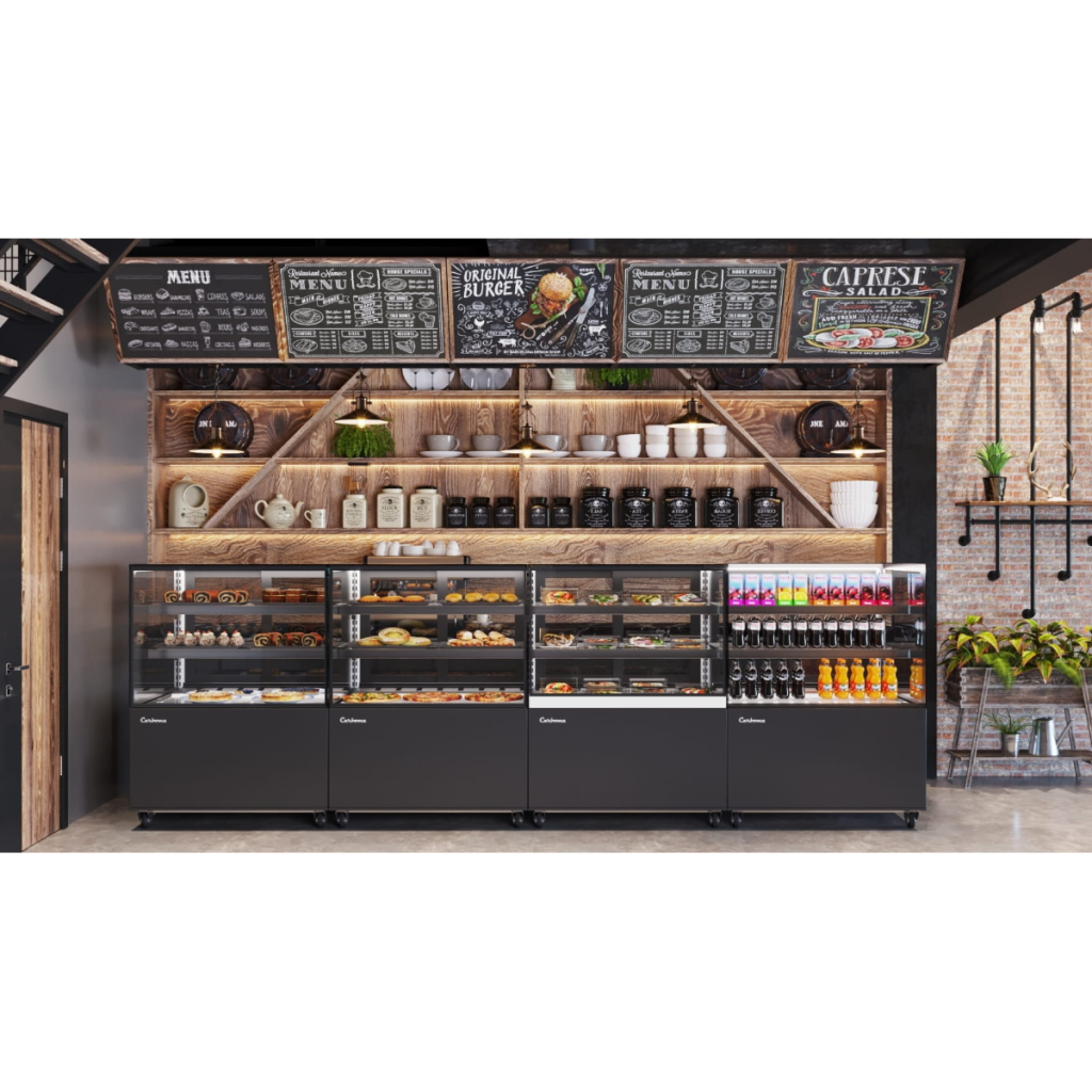 Витрина кондитерская Carboma KC71-130 VV 1,2-2 (9005) открытая предназначена для охлаждения, демонстрации и кратковременного хранения десертов, хлебобулочных и кондитерских изделий. Благодаря отсутствию фронтального стекла, обеспечивается лёгкий и быстрый доступ к продукции, что делает витрину удобной для самообслуживания.