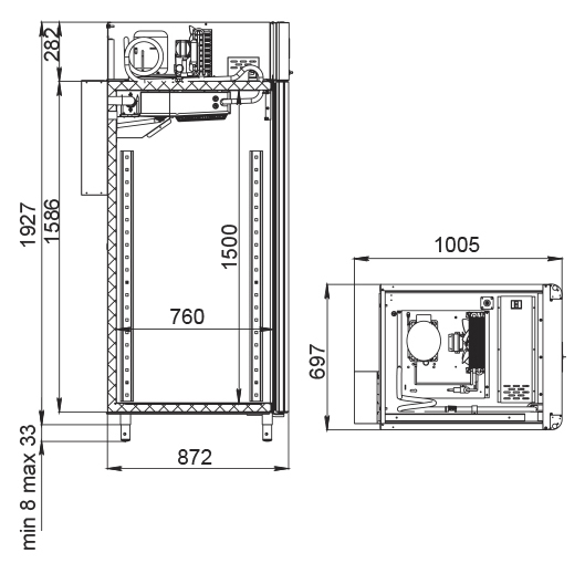 Каталог оборудования Холодильное оборудованиеШкафы холодильныеСпециализированные холодильные шкафыШкаф холодильный для вызревания сыра Polair CS107 Cheese полки нерж., со стеклом Шкаф холодильный для вызревания сыра Polair CS107 Cheese полки нерж., со стеклом Код товара: 062-630 Поделиться: WhatsAppTelegram СравнитьДобавить в КПВ избранное 0 397 800 ₽ В корзину 0 шт Под заказСамовывоз сегодня бесплатно Взять в кредит Купить в лизинг Получить консультацию в WhatsApp Описание Характеристики Отзывы 0 Инструкции 5 Шкаф холодильный для вызревания сыра Polair CS107 Cheese полки нерж., со стеклом предназначен для создания оптимальных условий хранения и дозревания твердых и полутвердых сыров на предприятиях общественного питания и торговли. Монолитный цельнозаливной корпус изготовлен из нержавеющей стали снаружи и изнутри (кроме задней стенки), что обеспечивает высокую прочность и долговечность шкафа. Дверь выполнена из стеклопакета. Оборудование рассчитано на работу при температуре окружающей среды до 40 °С. Особенности: Верхнее расположение агрегата Многофункциональная русифицированная контрольная панель с 5-дюймовым дисплеем Возможность создания и сохранения собственных программ в памяти электронного блока Четыре перфорированные полки из нержавеющей стали Встроенный ультразвуковой увлажнитель (требуется подключение к системе очищенной воды и централизованной канализации) Распашная дверь с заливной теплоизоляцией Заменяемый уплотнитель двери с магнитной вставкой Встроенная ручка для удобства открытия Отключаемая внутренняя LED-подсветка Штампованное углубление в дне корпуса для удобства очистки Педаль для бесконтактного открывания двери Регулировка уровня влажности от 60% до 95% Максимальная нагрузка на полку — 40 кг Толщина стенки корпуса — 43 мм Polair CS107 Cheese полки нерж., со стеклом — надежный и функциональный холодильный шкаф, обеспечивающий оптимальные условия для хранения и дозревания твердых и полутвердых сыров. Благодаря прочному корпусу, точному контролю температуры и влажности, а также современным технологиям увлажнения и управления, оборудование способствует сохранению качества и вкусовых характеристик продукции, повышая эффективность работы предприятий питания и торговли.Изображение товара, представленного на фото, может отличаться от его фактического вида. Показать все Габаритные размеры697×1005×1960 ммДиапазон рабочей температурыот -2 до +30 °CДлина697 ммШирина1005 ммВысота1960 ммОбъём700 лКол-во дверей1 Тип двериСтеклянная Количество полок4 штДопустимая нагрузка на полку40 кгУровень влажностиот 60 до 95 %Холодильный агрегатВстроенный Тип оттайкиАвтоматическая Тип охлажденияДинамическое ПодсветкаЕсть ХладагентR290 Вес нетто160 кгВес брутто190 кгБрендPolairВсе специализированные холодильные шкафы Из нержавейкиВсе специализированные холодильные шкафы Стеклянная дверь Оставить отзыв Еще никто не оставил отзыв на этот товар Схема POLAIR CS107 Cheese.jpgИнструкция на POLAIR CS107 Cheese.pdfБрошюра на POLAIR CS107 Cheese.pdfДекларация о соответствии.pdfСертификат соответствия.pdf Похожие товары Перейти в каталог Под заказ 419 900 ₽ Шкаф холодильный для хлебопекарных производств Polair CS107-Bakery Br со стеклом (Тип 2) В наличии 186 231 ₽ Шкаф холодильный HURAKAN HKN-MA230 для созревания мяса Под заказ 405 450 ₽ Шкаф холодильный для хлебопекарных производств Polair CS107 Bakery Br черный, со стеклом (Тип 1) Под заказ 389 3