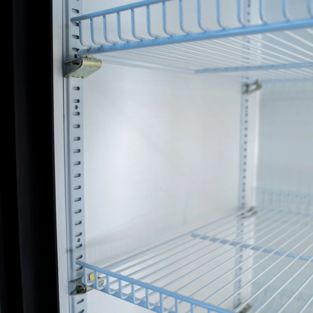 Шкаф отличается высокой теплоизоляцией, эффективной системой динамического охлаждения и удобством эксплуатации. Использование светодиодной подсветки обеспечивает яркое освещение товаров, долгий срок службы и низкое энергопотребление.