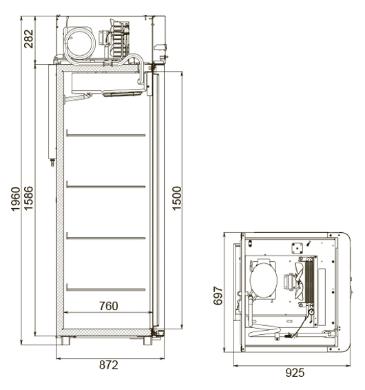 Каталог оборудования Холодильное оборудованиеШкафы холодильныеШкафы холодильные универсальные от -5 до +5 °СШкаф холодильный универсальный Polair CV107-Gm Alu Шкаф холодильный универсальный Polair CV107-Gm Alu Код товара: 062-610 Поделиться: WhatsAppTelegram СравнитьДобавить в КПВ избранное 0 149 175 ₽ В корзину 0 шт Под заказСамовывоз сегодня бесплатно Взять в кредит Купить в лизинг Получить консультацию в WhatsApp Описание Характеристики Отзывы 0 Инструкции 4 Шкаф холодильный универсальный Polair CV107-Gm Alu предназначен для демонстрации и надежного хранения продуктов на предприятиях общественного питания и торговли. Корпус шкафа цельнозаливной, выполнен из прочной стали с полимерным покрытием, что гарантирует высокую механическую прочность и длительный срок службы. Алюминиевые профили дверей и верхней панели подчеркивают современный, премиальный дизайн. Оборудование эффективно работает при температуре окружающей среды до 40 °С и влажности воздуха до 80%. Особенности модели: Многофункциональная контрольная панель (терморегулятор) для удобного управления параметрами. Жидкокристаллический дисплей, обеспечивающий чёткое отображение настроек и информации о работе шкафа. Клапан Шредера для удобного обслуживания холодильного контура. Распашной тип двери для легкого доступа к продуктам. Возможность изменить сторону открывания двери (при наличии опции), что делает установку более универсальной. Полностью интегрированные в профили дверей ручки, подчеркивающие стильный внешний вид и удобство использования. Встроенная светодиодная подсветка для отличной видимости содержимого шкафа. Надежный замок для защиты продуктов. Педаль для удобного открывания двери без использования рук. Высокая допустимая нагрузка на полку — до 40 кг, что позволяет хранить большие объемы продукции. Размер полки: GN 2/1 (530×650 мм), подходит для стандартных гастроемкостей. Толщина стенки корпуса — 43 мм, обеспечивающая отличную теплоизоляцию и снижение энергопотерь. Polair CV107-Gm Alu — это функциональный и стильный холодильный шкаф, который сочетает надежность, эргономичный дизайн и удобство эксплуатации. Использование прочных материалов и продуманная конструкция делают его идеальным решением для профессиональной кухни или торгового зала.Изображение товара, представленного на фото, может отличаться от его фактического вида. Показать все Габаритные размеры697×925×1960 ммДиапазон рабочей температурыот -5 до +5 °CДлина697 ммГлубина925 ммВысота695 ммОбъём700 лРазмер полки530×650 ммКоличество полок4 штКоличество дверей1 штТип оттайкиАвтоматическая Тип охлажденияДинамическое Тип управленияЭлектронное Материал корпусаНержавеющая сталь Тип двериМеталлическая ЗамокЕсть Способ открыванияРаспашные ХладагентR290 Холодильный агрегатВстроенный Расположение агрегатаВерхнее Потребление электроэнергии в сутки4,5 кВтПотребляемая мощность0,4 кВтНапряжение220 ВГабариты в упаковке800×1000×2150 ммВес нетто115 кгВес брутто140 кгБрендPolairВсе шкафы холодильные универсальные от -5 до +5 °С Из нержавейки Оставить отзыв Еще никто не оставил отзыв на этот товар Схема POLAIR CV107-Gm Alu.jpgИнструкция на POLAIR CV107-Gm Alu.pdfДекларация о соответствии.pdfСертификат соответствия.pdf Похожие товары Перейти в каталог В наличии 122 323 ₽ Шкаф холодильный универсальный МХМ ШХСн 0,80 М В наличии 88 130 ₽ Шкаф холодильный универсальный МХМ Капри 0,7 УСК Под зака