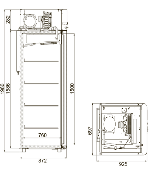 Каталог оборудования Холодильное оборудованиеШкафы холодильныеШкафы холодильные универсальные от -5 до +5 °СШкаф холодильный универсальный Polair CV107-Sm Alu Шкаф холодильный универсальный Polair CV107-Sm Alu Код товара: 062-611 Поделиться: WhatsAppTelegram СравнитьДобавить в КПВ избранное 0 129 370 ₽ В корзину 0 шт Под заказСамовывоз сегодня бесплатно Взять в кредит Купить в лизинг Получить консультацию в WhatsApp Описание Характеристики Отзывы 0 Инструкции 4 Шкаф холодильный универсальный Polair CV107-Sm Alu предназначен для демонстрации и надежного хранения продуктов на предприятиях общественного питания и торговли. Цельнозаливной корпус выполнен из стали с полимерным покрытием и оснащен алюминиевыми профилями, что обеспечивает высокую прочность конструкции и долговечность, а также подчеркивает современный премиальный дизайн. Шкаф работает при температуре окружающей среды до 40 °С и влажности воздуха до 80%. Особенности модели: Контрольная панель с быстрым доступом к настройкам, удобным возвратом в предыдущее меню и возможностью полного отключения без отдельной кнопки. Жидкокристаллический дисплей для наглядного отображения параметров. Клапан Шредера для обслуживания холодильной системы. Компенсационный клапан с ПЭНом обогрева, ПЭНы обогрева трубки слива конденсата и дверного проема — предотвращают образование льда и обеспечивают надежную работу. Распашной тип двери с возможностью изменения стороны открывания, что делает установку более гибкой. Полностью интегрированные ручки, удобные и стильные. Эластичные уплотнители с магнитными вставками для максимальной герметизации. Внутренняя подсветка вынесена на нижнюю часть фронтальной панели. Микропереключатель для автоматического отключения вентилятора и включения подсветки при открытии дверей. Регулируемые по высоте ножки для устойчивости на любом полу. Педаль для удобного открывания без рук. Замок для защиты содержимого. Высокая допустимая нагрузка на полку — до 40 кг. Размер полки: GN 2/1 (530×650 мм). Толщина стенки корпуса — 43 мм, что обеспечивает отличную теплоизоляцию. Polair CV107-Sm Alu — это функциональный и надежный холодильный шкаф с современным дизайном, который обеспечивает максимальную сохранность и удобный доступ к продуктам. Отлично подходит для ресторанов, кафе и магазинов, где важны надежность, стиль и энергоэффективность.Изображение товара, представленного на фото, может отличаться от его фактического вида. Показать все Габаритные размеры697×925×1960 ммДиапазон рабочей температурыот -5 до +5 °CДлина697 ммГлубина925 ммВысота1960 ммОбъём700 лРазмер полки530×650 ммКоличество полок4 штКоличество дверей1 штТип оттайкиАвтоматическая Тип охлажденияДинамическое Тип управленияЭлектронное Материал корпусаНержавеющая сталь Тип двериМеталлическая ЗамокЕсть Способ открыванияРаспашные ХладагентR290 Холодильный агрегатВстроенный Расположение агрегатаВерхнее Потребление электроэнергии в сутки4,5 кВтПотребляемая мощность0,4 кВтНапряжение220 ВГабариты в упаковке800×1000×2150 ммВес нетто113 кгВес брутто138 кгБрендPolairВсе шкафы холодильные универсальные от -5 до +5 °С Из нержавейки Оставить отзыв Еще никто не оставил отзыв на этот товар Схема POLAIR CV107-Sm.jpgИнструкция на POLAIR CV107-Sm.pdfДекларация о соответствии.pdfСертификат соответствия.pdf Похожие товары Перейти в каталог В наличии 85 869 ₽ Шкаф холодильный универсальный Сев