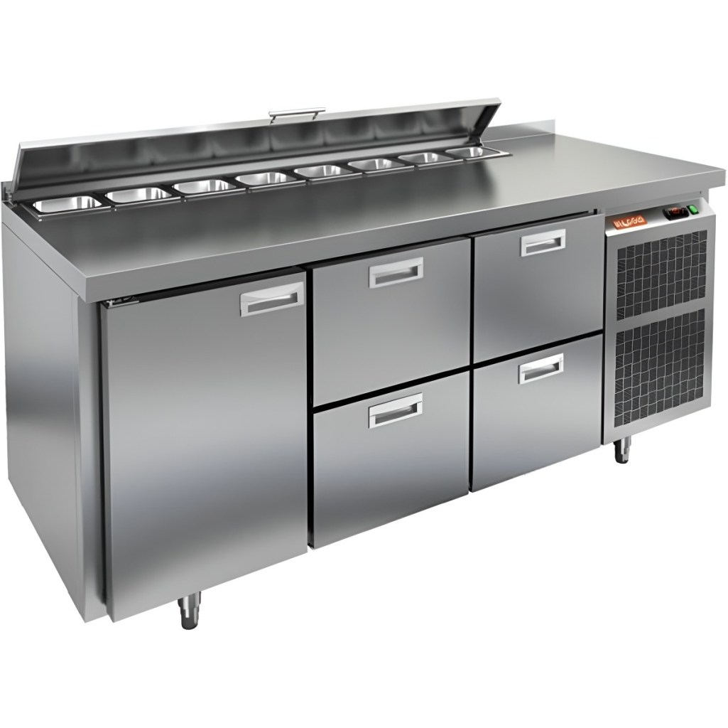 Каталог оборудования Холодильное оборудованиеСтолы охлаждаемыеСтолы холодильные для салатовСтол холодильный для салатов HiCold SL1-122GN (1/3) с крышкой Стол холодильный для салатов HiCold SL1-122GN (1/3) с крышкой Код товара: 064-843 Поделиться: WhatsAppTelegram СравнитьДобавить в КПВ избранное 0 229 492 ₽ В корзину 0 шт Под заказСамовывоз сегодня бесплатно Взять в кредит Купить в лизинг Получить консультацию в WhatsApp Описание Характеристики Отзывы 0 Инструкции 2 Стол холодильный для салатов HiCold SL1-122GN (1/3) предназначен для использования на предприятиях общественного питания и торговли. Он объединяет рабочую поверхность и охлаждаемый отсек, что делает его удобным решением для хранения, охлаждения и подготовки ингредиентов при приготовлении салатов, пиццы и других блюд. Такая конструкция позволяет повару работать быстрее и эффективнее, так как все необходимые продукты находятся под рукой. Корпус и столешница выполнены из прочной нержавеющей стали, устойчивой к коррозии и легко поддающейся санитарной обработке. Металлическая крышка защищает продукты от загрязнений и сохраняет их свежесть. Особенности модели: Электронная панель управления — точная настройка температурного режима. 1 глухая дверь — удобный доступ к холодильному отсеку. 4 выдвижных ящика — быстрое размещение и замена продуктов. Вместимость салат-бара — до 8 гастроемкостей глубиной до 100 мм. Автоматические доводчики дверей с фиксацией в открытом положении. Легкозаменяемые магнитные уплотнители — надежная герметичность. Открытая агрегатная часть — быстрый доступ для обслуживания. Регулируемые по высоте ножки — устойчивость даже на неровном полу. Толщина столешницы, борта и теплоизоляции — 50 мм, что обеспечивает прочность и энергоэффективность конструкции. HiCold SL1-122GN (1/3) — практичное и удобное решение для профессиональной кухни, обеспечивающее удобную подготовку и хранение ингредиентов.Изображение товара, представленного на фото, может отличаться от его фактического вида. Показать все Габаритные размеры1835×700×850 ммДиапазон рабочей температурыот +2 до +10 °CРасположение агрегатаБоковое Материал столешницыНержавеющая Тип столаС дверьми и ящиками Тип двериГлухая Объём505 лКоличество дверей1 штТип гастроемкостейGN 1/3 Количество ящиков4 штРазмер полки530×325 ммНапряжение220 ВМощность0,46 кВтТип охлажденияДинамическое Тип оттайкиАвтоматическая СтолешницаС бортом Вес нетто120 кгВес брутто140 кгБрендHicold Оставить отзыв Еще никто не оставил отзыв на этот товар Паспорт на HICOLD SL1-122GN.pdfДекларация о соответствии.pdf Ранее просмотрено Под заказ 320 122 ₽ Стол холодильный для салатов HiCold SL2-2222GN (1/6) с крышкой Под заказ 197 991 ₽ Стол холодильный для салатов HiCold SL1-1111GN (1/3) с крышкой