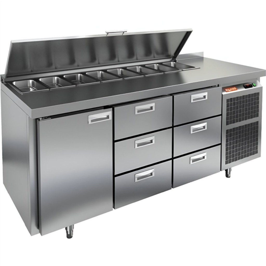 Каталог оборудования Холодильное оборудованиеСтолы охлаждаемыеСтолы холодильные для салатовСтол холодильный для салатов HiCold SL1-133GN (1/3) с крышкой Стол холодильный для салатов HiCold SL1-133GN (1/3) с крышкой Код товара: 064-848 Поделиться: WhatsAppTelegram СравнитьДобавить в КПВ избранное 0 209 962 ₽ В корзину 0 шт Под заказСамовывоз сегодня бесплатно Взять в кредит Купить в лизинг Получить консультацию в WhatsApp Описание Характеристики Отзывы 0 Стол холодильный для салатов HiCold SL1-133GN (1/3) предназначен для использования на предприятиях общественного питания и торговли. Он объединяет рабочую поверхность и охлаждаемый отсек, что делает его удобным решением для хранения, охлаждения и подготовки ингредиентов при приготовлении салатов, пиццы и других блюд. Такая конструкция позволяет повару работать быстрее и эффективнее, так как все необходимые продукты находятся под рукой. Корпус и столешница выполнены из прочной нержавеющей стали, устойчивой к коррозии и легко поддающейся санитарной обработке. Металлическая крышка защищает продукты от загрязнений и сохраняет их свежесть. Особенности модели: Электронная панель управления — точная настройка температурного режима. 1 глухая дверь — удобный доступ к холодильному отсеку. 6 выдвижных ящика — быстрое размещение и замена продуктов. Вместимость салат-бара — до 8 гастроемкостей глубиной до 100 мм. Автоматические доводчики дверей с фиксацией в открытом положении. Легкозаменяемые магнитные уплотнители — надежная герметичность. Открытая агрегатная часть — быстрый доступ для обслуживания. Регулируемые по высоте ножки — устойчивость даже на неровном полу. Толщина столешницы, борта и теплоизоляции — 50 мм, что обеспечивает прочность и энергоэффективность конструкции. HiCold SL1-133GN (1/3) — практичное и удобное решение для профессиональной кухни, обеспечивающее удобную подготовку и хранение ингредиентов. Изображение товара, представленного на фото, может отличаться от его фактического вида. Показать все Габаритные размеры1835×700×850 ммДиапазон рабочей температурыот +2 до +10 °CРасположение агрегатаБоковое Материал столешницыНержавеющая Тип столаС дверьми и ящиками Тип двериГлухая Объём505 лКоличество дверей1 штТип гастроемкостейGN 1/3 Количество ящиков6 штРазмер полки530×325 ммНапряжение220 ВМощность0,46 кВтТип охлажденияДинамическое Тип оттайкиАвтоматическая СтолешницаС бортом Габариты в упаковке2000×850×1000 ммВес нетто130 кгВес брутто185 кгБрендHicold Оставить отзыв Еще никто не оставил отзыв на этот товар Ранее просмотрено Под заказ 201 682 ₽ Стол холодильный для салатов HiCold SL2-22GN (1/6) О без крышки