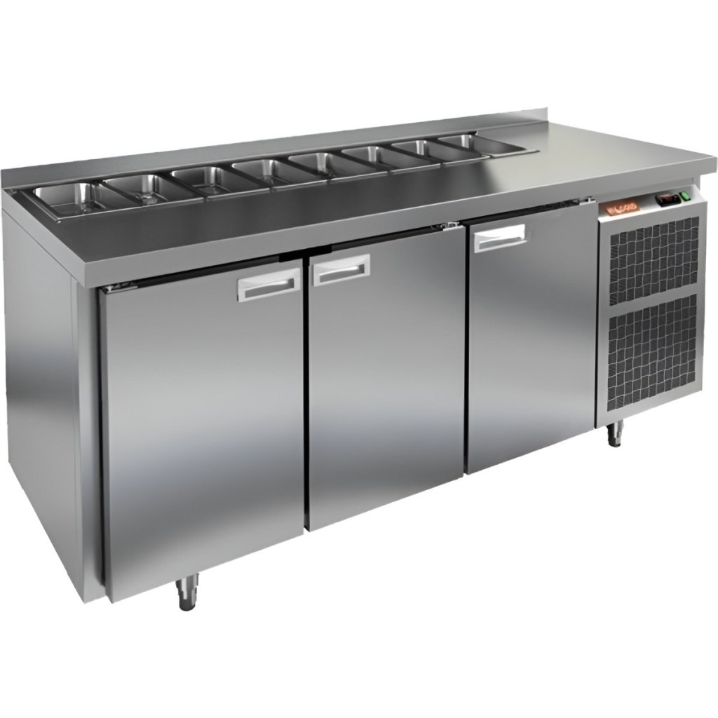 Каталог оборудования Холодильное оборудованиеСтолы охлаждаемыеСтолы холодильные для салатовСтол холодильный для салатов HiCold SL2-111SN (1/6) без крышки Стол холодильный для салатов HiCold SL2-111SN (1/6) без крышки Код товара: 064-807 Поделиться: WhatsAppTelegram СравнитьДобавить в КПВ избранное 0 163 612 ₽ В корзину 0 шт Под заказСамовывоз сегодня бесплатно Взять в кредит Купить в лизинг Получить консультацию в WhatsApp Описание Характеристики Отзывы 0 Инструкции 2 Стол холодильный для салатов HiCold SL2-111SN (1/6) без крышки применяется на предприятиях общественного питания и торговли для хранения ингредиентов, используемых при приготовлении салатов, пиццы и других блюд. Совмещает рабочую поверхность и охлаждаемый отсек, что упрощает работу персонала. Корпус и столешница выполнены из прочной и гигиеничной нержавеющей стали. Столешница с бортом предотвращает скатывание и проливание ингредиентов, обеспечивая аккуратность рабочего пространства. Важно: на фото представлена аналогичная модель с крышкой. Особенности: Электронная панель управления — точная настройка температуры и режимов. 3 полки формата GN 1/1 — вместительное внутреннее хранение. Салат-бар на 8 гастроемкостей — удобная организация ингредиентов. Автоматические доводчики дверей — комфортная эксплуатация. Съёмные магнитные уплотнители — простота замены и герметичность. Открытая агрегатная часть — лёгкий доступ к оборудованию. Регулируемые ножки — установка на любом покрытии. Гастроемкости до 100 мм глубиной, столешница и бортик — по 50 мм, теплоизоляция — 50 мм. HiCold SL2-111SN без крышки — удобный, вместительный и надёжный стол для профессиональной кухни. Идеален для быстрого доступа к охлаждённым ингредиентам в процессе приготовления.Изображение товара, представленного на фото, может отличаться от его фактического вида. Показать все Габаритные размеры1835×600×850 ммДиапазон рабочей температурыот +2 до +10 °CРасположение агрегатаБоковое Материал столешницыНержавеющая Тип столаС дверьми Тип двериГлухая Объём435 лКоличество дверей3 штТип гастроемкостейGN 1/6 Размер полки430×325 ммНапряжение220 ВМощность0,46 кВтТип охлажденияДинамическое Тип оттайкиАвтоматическая СтолешницаС бортом Вес нетто120 кгВес брутто184 кгБрендHicold Оставить отзыв Еще никто не оставил отзыв на этот товар Паспорт на HICOLD SL2-111SN.pdfДекларация о соответствии.pdf Ранее просмотрено Под заказ 189 981 ₽ Стол холодильный для салатов HiCold SL2-111GN (1/6) М с крышкой Под заказ 319 402 ₽ Стол холодильный для салатов HiCold SLE3-2222GN М без крышки Под заказ 185 031 ₽ Стол холодильный для салатов HiCold SLE2-22GN (1/6) О с крышкой Под заказ 147 591 ₽ Стол холодильный для салатов HiCold SLE1-111GN (1/3) О с крышкой