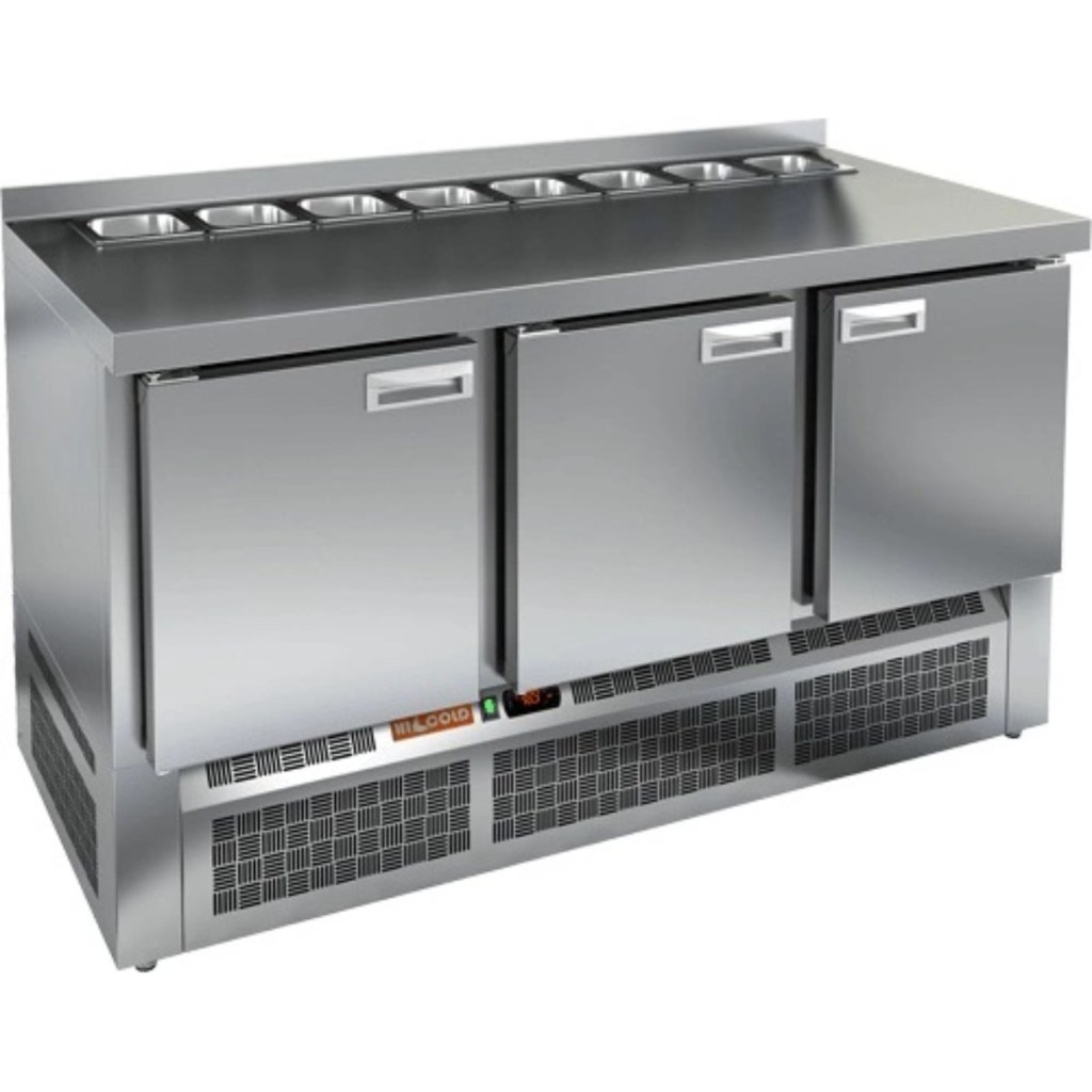 Каталог оборудования Холодильное оборудованиеСтолы охлаждаемыеСтолы холодильные для салатовСтол холодильный для салатов HiCold SLE2-111SN (1/6) без крышки Стол холодильный для салатов HiCold SLE2-111SN (1/6) без крышки Код товара: 064-871 Поделиться: WhatsAppTelegram СравнитьДобавить в КПВ избранное 0 143 632 ₽ В корзину 0 шт Под заказСамовывоз сегодня бесплатно Взять в кредит Купить в лизинг Получить консультацию в WhatsApp Описание Характеристики Отзывы 0 Инструкции 2 Стол холодильный для салатов HiCold SLE2-111SN (1/6) без крышки предназначен для предприятий общественного питания и торговли. Он используется для хранения, охлаждения и обработки ингредиентов, применяемых при приготовлении салатов, пиццы, закусок и других блюд. Модель объединяет удобную рабочую поверхность и охлаждаемый отсек, позволяя повару иметь все необходимое под рукой. Конструкция выполнена из прочной нержавеющей стали, устойчивой к коррозии и легкой в уходе. Особенности модели: Электронная панель управления — точная настройка температуры и контроль за режимами работы. 3 вместительные внутренние полки — рациональное распределение хранения. Салат-бар вмещает 8 гастроемкостей — оптимальная организация ингредиентов. Автоматические доводчики дверей с фиксацией в открытом положении — удобно при загрузке и выгрузке продуктов. Магнитные уплотнители — легко заменяются, обеспечивая герметичность. Открытая агрегатная часть — упрощает техническое обслуживание. Регулируемые по высоте ножки — позволяют установить оборудование на любой поверхности. Глубина гастроемкостей — до 100 мм. Толщина столешницы, борта и теплоизоляции — по 50 мм, что способствует сохранению холода и прочности конструкции. HiCold SLE2-111SN (1/6) без крышки — это функциональный и надёжный салатный стол, сочетающий в себе удобство работы и эффективное охлаждение. Отличное решение для кухни с интенсивной нагрузкой. Изображение товара, представленного на фото, может отличаться от его фактического вида. Показать все Габаритные размеры1485×600×850 ммДиапазон рабочей температурыот +2 до +10 °CРасположение агрегатаНижнее Материал столешницыНержавеющая Тип столаС дверьми Тип двериГлухая Объём320 лКоличество дверей3 штТип гастроемкостейGN 1/6 Размер полки430×325 ммНапряжение220 ВМощность0,22 кВтТип охлажденияДинамическое Тип оттайкиАвтоматическая СтолешницаС бортом Габариты в упаковке1700×750×1080 ммВес нетто88 кгВес брутто148 кгБрендHicold Оставить отзыв Еще никто не оставил отзыв на этот товар Паспорт на HICOLD SLE2-111SN.pdfДекларация о соответствии.pdf Ранее просмотрено Под заказ 144 082 ₽ Стол холодильный для салатов HiCold SLE2-111GN (1/6) без крышки Под заказ 867 419 ₽ Котел пищеварочный Аbat КПЭМ-200-ОМ2 со сливным краном Под заказ 109 310 ₽ Стол холодильный для салатов Polair TMi2GNsal-G