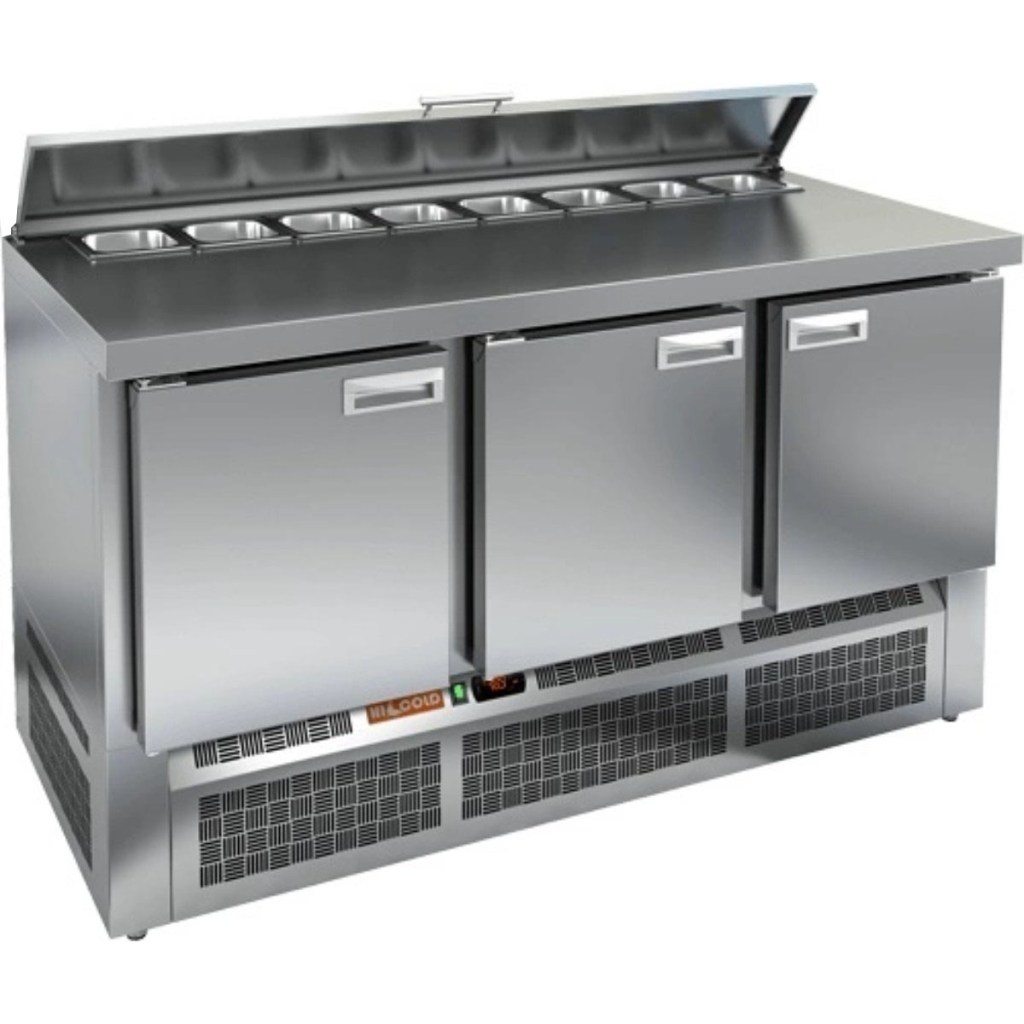 Каталог оборудования Холодильное оборудованиеСтолы охлаждаемыеСтолы холодильные для салатовСтол холодильный для салатов HiCold SLE2-111SN (1/6) О с крышкой Стол холодильный для салатов HiCold SLE2-111SN (1/6) О с крышкой Код товара: 064-872 Поделиться: WhatsAppTelegram СравнитьДобавить в КПВ избранное 0 146 782 ₽ В корзину 0 шт Под заказСамовывоз сегодня бесплатно Взять в кредит Купить в лизинг Получить консультацию в WhatsApp Описание Характеристики Отзывы 0 Инструкции 2 Стол холодильный для салатов HiCold SLE2-111SN (1/6) О с крышкой предназначен для предприятий общественного питания и торговли. Он используется для хранения, охлаждения и обработки ингредиентов, применяемых при приготовлении салатов, пиццы, закусок и других блюд. Модель объединяет удобную рабочую поверхность и охлаждаемый отсек, позволяя повару иметь все необходимое под рукой. Конструкция выполнена из прочной нержавеющей стали, устойчивой к коррозии и легкой в уходе. Металлическая крышка защищает продукты от загрязнений и сохраняет их свежесть. Особенности модели: Электронная панель управления — точная настройка температуры и контроль за режимами работы. 3 вместительные внутренние полки — рациональное распределение хранения. Салат-бар вмещает 8 гастроемкостей — оптимальная организация ингредиентов. Автоматические доводчики дверей с фиксацией в открытом положении — удобно при загрузке и выгрузке продуктов. Магнитные уплотнители — легко заменяются, обеспечивая герметичность. Открытая агрегатная часть — упрощает техническое обслуживание. Регулируемые по высоте ножки — позволяют установить оборудование на любой поверхности. Глубина гастроемкостей — до 100 мм. Толщина столешницы и теплоизоляции — по 50 мм, что способствует сохранению холода и прочности конструкции. HiCold SLE2-111SN (1/6) О с крышкой — это функциональный и надёжный салатный стол, сочетающий в себе удобство работы и эффективное охлаждение. Отличное решение для кухни с интенсивной нагрузкой. Изображение товара, представленного на фото, может отличаться от его фактического вида. Показать все Габаритные размеры1485×600×850 ммДиапазон рабочей температурыот +2 до +10 °CРасположение агрегатаНижнее Материал столешницыНержавеющая Тип столаС дверьми Тип двериГлухая Объём320 лКоличество дверей3 штТип гастроемкостейGN 1/6 Размер полки430×325 ммНапряжение220 ВМощность0,22 кВтТип охлажденияДинамическое Тип оттайкиАвтоматическая СтолешницаБез борта Габариты в упаковке1700×750×1080 ммВес нетто88 кгВес брутто148 кгБрендHicold Оставить отзыв Еще никто не оставил отзыв на этот товар Паспорт на HICOLD SLE2-111SN О.pdfДекларация о соответствии.pdf Ранее просмотрено Под заказ 143 361 ₽ Стол холодильный для салатов HiCold SLE1-111GN (1/3) без крышки Под заказ 121 041 ₽ Стол холодильный для салатов HiCold SLE2-11SN (1/6) без крышки Под заказ 125 182 ₽ Стол холодильный для салатов HiCold SLE3-11GN О с крышкой Под заказ 174 051 ₽ Стол холодильный для салатов HiCold SLE3-111GN высокое стекло Под заказ 121 491 ₽ Стол холодильный для салатов HiCold SLE2-11GN (1/6) без крышки Под заказ 146 332 ₽ Стол холодильный для салатов HiCold SLE2-11GN (1/6) М с крышкой Под заказ 238 582 ₽ Стол холодильный для салатов HiCold SLE2-222SN (1/6) с крышкой