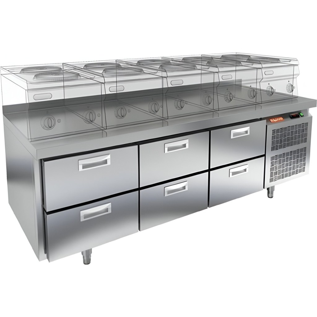 Каталог оборудования Холодильное оборудованиеСтолы охлаждаемыеСтолы холодильные под тепловое оборудованиеСтол охлаждаемый HiCold GN 222/TN LT SH под тепловое оборудование Стол охлаждаемый HiCold GN 222/TN LT SH под тепловое оборудование Код товара: 065-447 Поделиться: WhatsAppTelegram СравнитьДобавить в КПВ избранное 0 222 292 ₽ В корзину 0 шт Под заказСамовывоз сегодня бесплатно Взять в кредит Купить в лизинг Получить консультацию в WhatsApp Описание Характеристики Отзывы 0 Инструкции 2 Стол охлаждаемый HiCold GN 222/TN LT SH под тепловое оборудование предназначен для обработки продуктов и временного хранения скоропортящихся ингредиентов и напитков на предприятиях общественного питания и торговли. Устройство совмещает функции холодильной камеры и рабочей поверхности, что делает его особенно удобным для профессиональных кухонь. Столешница рассчитана на установку теплового оборудования: под рабочей поверхностью встроен ДСП-лист, который укрепляет конструкцию и препятствует проникновению тепла внутрь. Такое решение обеспечивает дополнительную жесткость, позволяет рационально использовать рабочее пространство и повышает эффективность работы на кухне. Особенности: 6 выдвижных ящиков обеспечивают удобный доступ к продуктам и рациональную организацию пространства Автоматические доводчики дверей с фиксатором открытого положения улучшают эргономику работы и помогают сохранить холод внутри камеры. Легкозаменяемые магнитные уплотнители способствуют герметичности и простоте технического обслуживания. Конструкция на низких ножках обеспечивает стабильность и удобство эксплуатации. Толщина столешницы — 50 мм обеспечивает надёжную опору при интенсивной эксплуатации. Высота борта — 50 мм препятствует скатыванию продуктов и инвентаря. Толщина теплоизоляции — 50 мм способствует энергоэффективности и поддержанию стабильной температуры. Температурный диапазон окружающей среды — от 12 до 37 °C, что делает оборудование универсальным в разных климатических условиях. HiCold GN 222/TN LT SH сочетает функциональность, надёжность и простоту в обслуживании. Идеально подходит для кухонь ресторанов, кафе и других заведений общепита, где важно одновременно эффективно хранить продукты и иметь под рукой рабочее пространство.Изображение товара, представленного на фото, может отличаться от его фактического вида. Показать все Габаритные размеры1835×700×610 ммДиапазон рабочей температурыот -2 до +10 °CМатериал столешницыНержавеющая Расположение агрегатаБоковое Объём375 лТип столаС ящиками Количество ящиков6 штНапряжение220 ВМощность0,46 кВтТип охлажденияДинамический Тип оттайкиАвтоматическая СтолешницаС бортом Габариты в упаковке2000×850×850 ммВес нетто124 кгВес брутто170 кгБрендHicold Оставить отзыв Еще никто не оставил отзыв на этот товар Паспорт на HICOLD GN 222TN LT.pdfДекларация о соответствии.pdf Похожие товары Перейти в каталог Под заказ 137 619 ₽ Стол холодильный среднетемпературный Polair TD3GN-G Под заказ 108 164 ₽ Стол холодильный среднетемпературный HURAKAN HKN-GN3TN С этим товаром покупают Под заказ 389 300 ₽ Шкаф холодильный для вызревания мяса Polair CS107 Meat (Тип 1) Ранее просмотрено Под заказ 283 402 ₽ Стол охлаждаемый HiCold GN 2222/TN LT под тепловое оборудование
