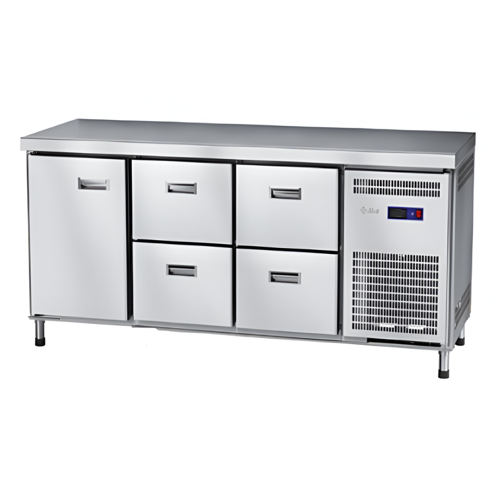 Стол холодильный Abat СХС-60-02 без борта (дверь, ящики 1/2, ящики 1/2) с интегрированным агрегатом спроектирован для кратковременного хранения предварительно охлаждённой продукции при низких температурах, а также ее обработки и разделки. Он идеально подходит для предприятий сферы общепита и торговых объектов, где важны качество хранения, удобство работы и экономия пространства. Совмещая в себе функции холодильной камеры и рабочей поверхности, этот стол помогает рационально организовать рабочее место, обеспечивая быстрый доступ к продуктам.