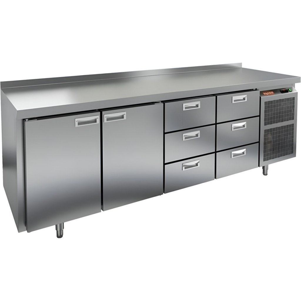 Каталог оборудования Холодильное оборудованиеСтолы охлаждаемыеСтолы холодильные среднетемпературныеСтол холодильный среднетемпературный HiCold SN 1133/TN Стол холодильный среднетемпературный HiCold SN 1133/TN Код товара: 001-335 Поделиться: WhatsAppTelegram СравнитьДобавить в КПВ избранное 0 258 741 ₽ В корзину 0 шт Под заказСамовывоз сегодня бесплатно Взять в кредит Купить в лизинг Получить консультацию в WhatsApp Описание Характеристики Отзывы 0 Инструкции 1 Стол холодильный среднетемпературный HiCold SN 1133/TN сочетает в себе рабочую поверхность для раскатывания теста и обработки ингредиентов, а также охлаждающую камеру для кратковременного хранения скоропортящихся продуктов и напитков. Оборудование предназначено для предприятий общественного питания и обеспечивает комфортную и эффективную работу на кухне. Особенности: Цельнозаливной корпус из нержавеющей стали с 50 мм теплоизоляцией, обеспечивающий высокую герметичность и жесткость конструкции. Надежный электронный блок управления с несколькими режимами оттаивания для удобства эксплуатации. Вентилятор повышенной мощности, обеспечивающий принудительную вентиляцию по всему объему стола и равномерное быстрое охлаждение. Интеллектуальное размораживание и термическое выпаривание конденсата для поддержания оптимальных условий внутри камеры. Новая экономичная модель компрессора, снижающая энергопотребление. Облегченный доступ к агрегату для удобства сервисного обслуживания. Двери с петлями-доводчиками, повышающими комфорт и безопасность при эксплуатации. Регулируемые по высоте ножки для адаптации к рабочей поверхности и неровностям пола. Максимальная нагрузка на полку — 50 кг. Высота борта — 50 мм для удобства и безопасности работы. Рабочая температура окружающего воздуха — от 12 до 37 °C. HiCold SN 1133/TN — это надежное, эргономичное и энергоэффективное решение для профессиональной кухни, сочетающее качественные материалы и современные технологии для оптимального хранения и подготовки продуктов.Изображение товара, представленного на фото, может отличаться от его фактического вида. Показать все Габаритные размеры2280×600×850 ммДиапазон рабочей температурыот -2 до +10 °CРасположение агрегатаБоковое Материал столешницыНержавеющая Тип столаС дверьми и ящиками Тип двериГлухая Объём570 лКоличество дверей2 штКоличество ящиков6 штНапряжение220 ВМощность0,48 кВтТип охлажденияДинамический Тип оттайкиАвтоматическая СтолешницаС бортом Вес нетто142 кгВес брутто156 кгБрендHicoldВсе холодильные столы HicoldВсе нержавеющие холодильные столы Все холодильные столы с бортом Оставить отзыв Еще никто не оставил отзыв на этот товар Паспорт на HICOLD SN 1133/TN.pdf Похожие товары Перейти в каталог Под заказ 228 141 ₽ Стол холодильный среднетемпературный HiCold SN 1122/TN Под заказ 148 851 ₽ Стол холодильный среднетемпературный HiCold SN 1111/TN W С этим товаром покупают В наличии 194 505 ₽ Шкаф комбинированный Polair СС 214-S Под заказ 61 119 ₽ Витрина холодильная для ингредиентов HICOLD VRTO 2280 1/3 В наличии 92 004 ₽ Плита индукционная Аbat КИП-29П-3,5-01 Ранее просмотрено Под заказ 191 871 ₽ Стол морозильный HiCold GN 22/BT P (без агрегата)