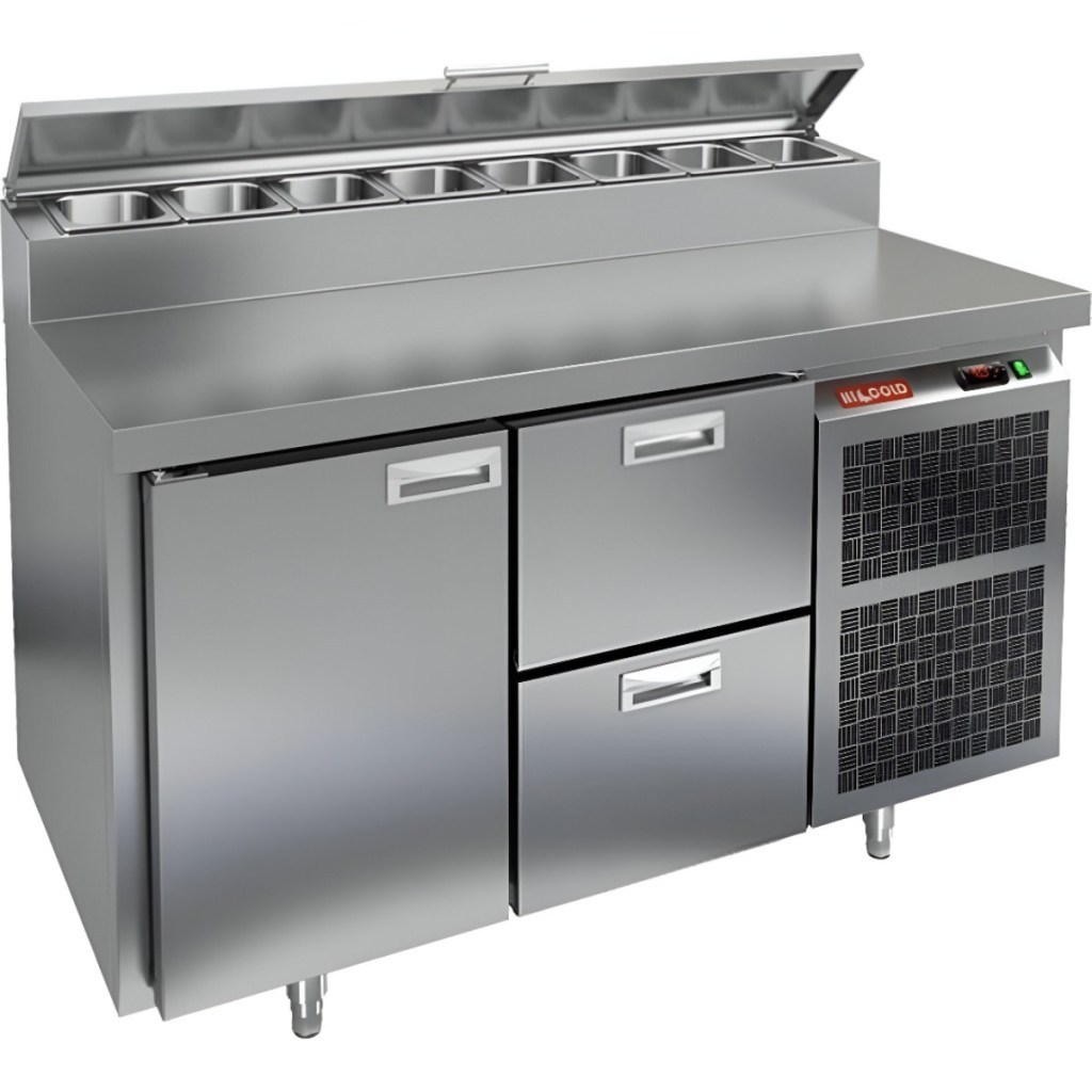 Каталог оборудования Холодильное оборудованиеСтолы охлаждаемыеСтолы холодильные для пиццыСтол холодильный для пиццы HiCold PZ1-12GN (1/3) Стол холодильный для пиццы HiCold PZ1-12GN (1/3) Код товара: 064-703 Поделиться: WhatsAppTelegram СравнитьДобавить в КПВ избранное 0 214 642 ₽ В корзину 0 шт Под заказСамовывоз сегодня бесплатно Взять в кредит Купить в лизинг Получить консультацию в WhatsApp Описание Характеристики Отзывы 0 Инструкции 1 Стол холодильный для пиццы HiCold PZ1-12GN (1/3) — профессиональное оборудование для предприятий общественного питания и торговли. Он объединяет рабочую поверхность для раскатки теста и подготовки ингредиентов с охлаждаемым блоком для кратковременного хранения скоропортящихся продуктов и напитков. Совмещение рабочей поверхности и холодильного объёма обеспечивает удобство и экономию времени — все необходимые компоненты всегда под рукой. Корпус и столешница выполнены из нержавеющей стали, что гарантирует долговечность, устойчивость к повреждениям и лёгкость ухода. Основные особенности: Нержавеющая столешница и корпус — прочность, гигиеничность и лёгкость очистки Динамическая система охлаждения — равномерное распределение холода Автоматическая оттайка — стабильная работа без образования наледи Электронная панель управления — точная настройка температуры 1 дверца и 2 выдвижных ящика — удобная организация внутреннего пространства 1 вместительная полка формата GN 1/1 (размер 530×325 мм) Автоматические доводчики дверей с фиксатором открытого положения — комфорт при работе Легкозаменяемые магнитные уплотнители — поддержание герметичности Открытая агрегатная часть — удобный доступ для обслуживания Регулируемые по высоте ножки — установка на неровных поверхностях Максимальная глубина гастроёмкостей: 100 мм Глубина рабочей поверхности: 324 мм Толщина столешницы и теплоизоляции: 50 мм Вместимость салат-бара: до 7 гастроёмкостей Стол холодильный HiCold PZ1-12GN (1/3) — надёжный и функциональный стол для пиццы и салатов. Прочная конструкция, продуманная организация внутреннего пространства и удобство эксплуатации делают его оптимальным решением для профессиональных кухонь. Изображение товара, представленного на фото, может отличаться от его фактического вида. Показать все Габаритные размеры1390×700×1000 ммДиапазон рабочей температурыот +2 до +10 °CРасположение агрегатаБоковое Материал столешницыНержавеющая Тип столаС дверьми и ящиками Тип двериГлухая Объём350 лТип гастроемкостейGN 1/3 Количество дверей1 штКоличество ящиков2 штРазмер полки530×325 ммНапряжение220 ВМощность0,2 кВтТип охлажденияДинамическое Тип оттайкиАвтоматическая Габариты в упаковке1550×800×1080 ммВес нетто141 кгВес брутто157 кгБрендHicoldВсе холодильные столы для пиццы HicoldВсе нержавеющие холодильные столы для пиццы Оставить отзыв Еще никто не оставил отзыв на этот товар Декларация о соответствии.pdf Ранее просмотрено Под заказ 209 062 ₽ Стол холодильный для пиццы HiCold PZE1-111GN (1/3) М Под заказ 158 391 ₽ Стол холодильный для пиццы HiCold PZE1-11GN (1/3) Под заказ 220 221 ₽ Стол холодильный для пиццы HiCold PZE1-1111GN (1/3) Под заказ 306 171 ₽ Стол холодильный для пиццы HiCold PZ2-222GN (1/6) Под заказ 236 872 ₽ Стол холодильный для пиццы HiCold PZ1-111GN (1/3) М Под заказ 250 642 ₽ Стол холодильный для пиццы HiCold PZ1-1111GN (1/3)