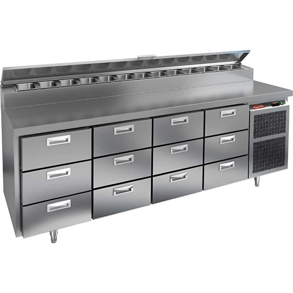 Каталог оборудования Холодильное оборудованиеСтолы охлаждаемыеСтолы холодильные для пиццыСтол холодильный для пиццы HiCold PZ2-3333GN (1/6) Стол холодильный для пиццы HiCold PZ2-3333GN (1/6) Код товара: 064-764 Поделиться: WhatsAppTelegram СравнитьДобавить в КПВ избранное 0 434 242 ₽ В корзину 0 шт Под заказСамовывоз сегодня бесплатно Взять в кредит Купить в лизинг Получить консультацию в WhatsApp Описание Характеристики Отзывы 0 Инструкции 1 Стол холодильный для пиццы HiCold PZ2-3333GN (1/6) камень предназначен для кухонь и предприятий общественного питания. Он используется для раскатки теста, подготовки ингредиентов для пиццы, салатов и других блюд, а также для охлаждения и кратковременного хранения скоропортящихся продуктов. Модель совмещает гранитную рабочую поверхность и охлаждаемый отсек с 12 выдвижными ящиками, обеспечивая удобный доступ к ингредиентам и эффективное хранение без дверей. Особенности: Динамическая система охлаждения для равномерного поддержания температуры Автоматическая оттайка для удобного обслуживания Электронная панель управления для точной настройки параметров Вместительная внутренняя полка формата GN 1/1 (размер 530×325 мм) 12 выдвижных ящиков для хранения ингредиентов Легкозаменяемые магнитные уплотнители для герметичности Открытая агрегатная часть для легкого доступа к компонентам Регулируемые по высоте ножки для устойчивости Гранитная столешница глубиной 486 мм и толщиной 50 мм — устойчива к повреждениям, легко моется и гигиенична Толщина теплоизоляции: 50 мм Максимальная глубина гастроемкостей: 100 мм Вместимость салат-бара: 13 гастроемкости Стол холодильный HiCold PZ2-3333GN (1/6) камень — это надежное и удобное решение для профессиональной кухни. Он обеспечивает легкий доступ к ингредиентам, упрощает хранение и подготовку продуктов и полностью соответствует стандартам предприятий общественного питания.Изображение товара, представленного на фото, может отличаться от его фактического вида. Показать все Габаритные размеры2280×700×1000 ммДиапазон рабочей температурыот +2 до +10 °CРасположение агрегатаБоковое Материал столешницыНержавеющая Тип столаС ящиками Объём660 лТип гастроемкостейGN 1/6 Количество ящиков12 штРазмер полки530×325 ммНапряжение220 ВМощность0,5 кВтТип охлажденияДинамическое Тип оттайкиАвтоматическая Габариты в упаковке2420×850×1080 ммВес нетто208 кгВес брутто240 кгБрендHicoldВсе холодильные столы для пиццы HicoldВсе нержавеющие холодильные столы для пиццы Оставить отзыв Еще никто не оставил отзыв на этот товар Декларация о соответствии.pdf Ранее просмотрено Под заказ 229 941 ₽ Стол холодильный для пиццы HiCold PZ1-13/GN (1/3)