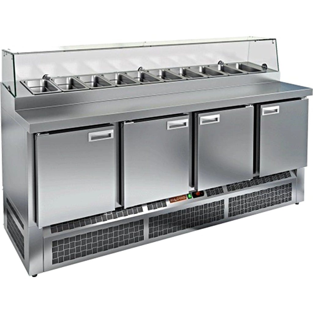Стол холодильный для пиццы HiCold PZE1-1111GN (1/3) стекло — профессиональное оборудование для предприятий общественного питания и торговли. Он сочетает рабочую поверхность для раскатки теста и подготовки ингредиентов с охлаждаемым блоком для кратковременного хранения скоропортящихся продуктов и напитков. Стеклянный купол защищает ингредиенты от внешних воздействий и позволяет удобно демонстрировать продукты в формате салат-бара. Корпус и столешница выполнены из нержавеющей стали, что обеспечивает долговечность, устойчивость к повреждениям и лёгкость ухода.