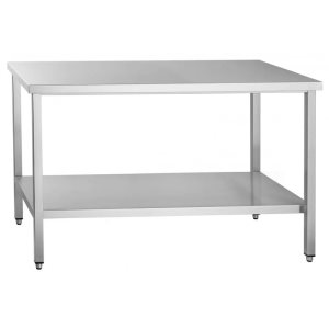 Каркас стола выполнен из нержавеющей стали — материала, обладающего высокой прочностью и устойчивостью к внешним воздействиям. Сталь не подвержена коррозии, не впитывает запахи и легко очищается с использованием различных моющих и дезинфицирующих средств, что гарантирует соблюдение санитарных норм и обеспечивает долгий срок службы.