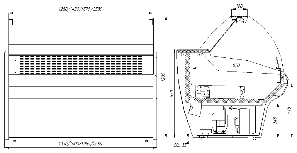 Carboma G110 VV 2,0-1 без боковин (ВХСр-2,0ш Carboma G110 (динамика)) — функциональная холодильная витрина с удобным доступом к продуктам, энергоэффективным управлением и возможностью индивидуального исполнения, идеально подходящая для предприятий общепита и торговли.
